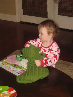 to see Cam's first Christmas/Santa. She is such a sweet baby. Then we were off to Mama Doris'. Sydney did not make that visit because she fell asleep and slept for five hours. I think she was still battling the anesthesia from surgery. Mrs. Pam cooked a great lunch and then it was nap time. Christmas night, we went to my moms and stayed there so we could open gifts Sunday morning with her. Then it was off to my dads for a couple of hours. We were on the road most of the trip as usual. The girls were great at opening presents and really loved everything. I think they were disappointed Monday morning that it was just mom and dad. Everyone was so good to all of us and we have outgrown our house. Where will I put all of these toys.